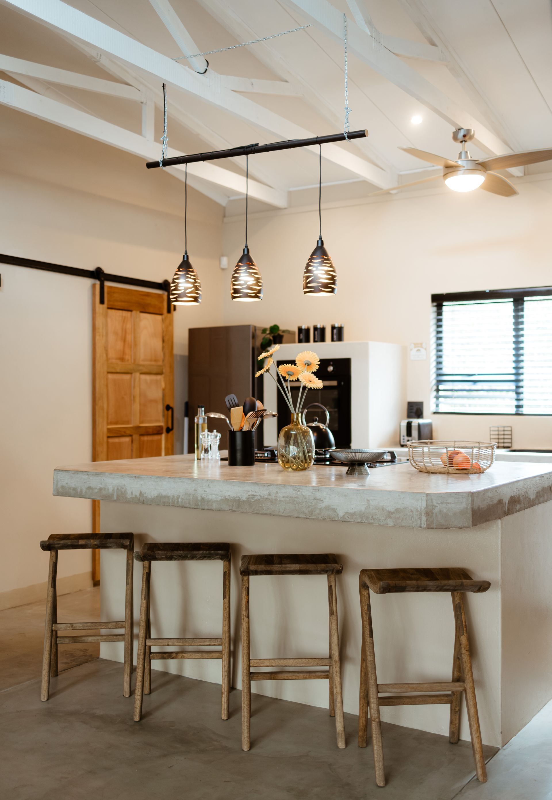 The house is fully equipped with all comforts you need. Both bedrooms have an en-suite bathroom, one with bath. And that one even has two showers, indoors and outdoors. Lots of appliances and an inverter to ease load shedding and yes, of course we have WiFi.