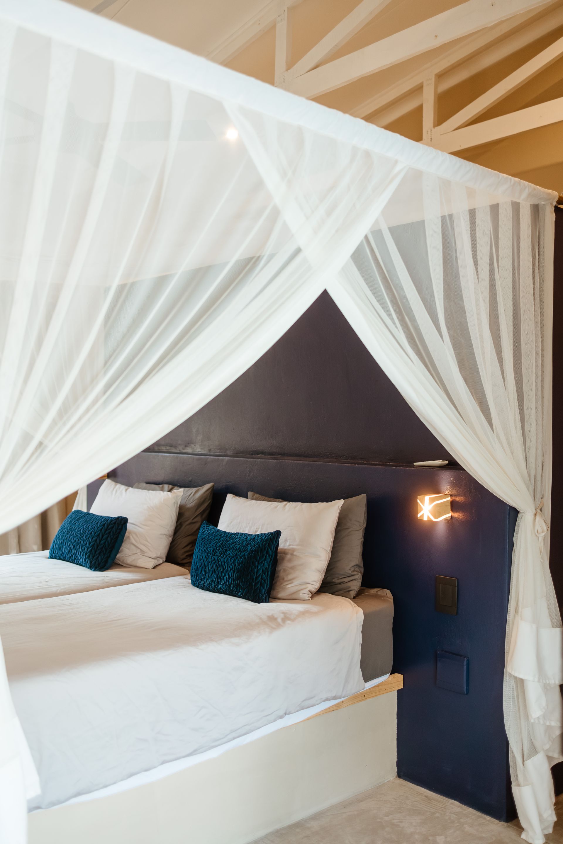 Both bedrooms have a semi walk-in closet, airconditioning, fans and two separate mattresses on the bed. The sliding doors are equipped with screen doors. You can leave the screen doors locked during the night and the sliding doors open. Let the sounds of the bush come in while uninvited guests will stay out.