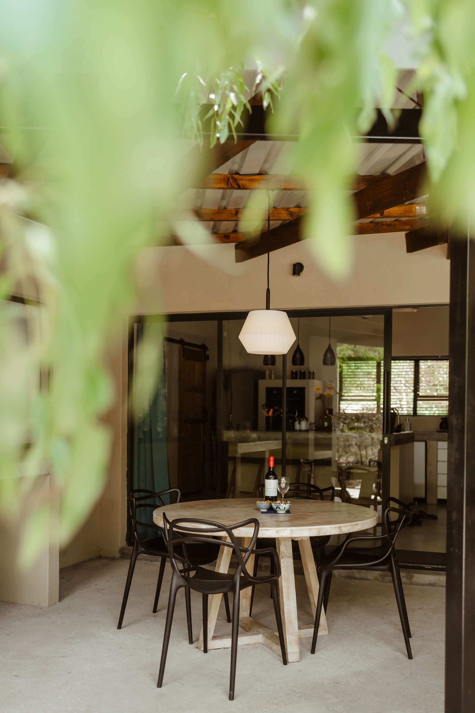 The house is built as if it embraces the bush and wildlife. You'll find a large roofed patio with braai, round diningtable and lounge set.